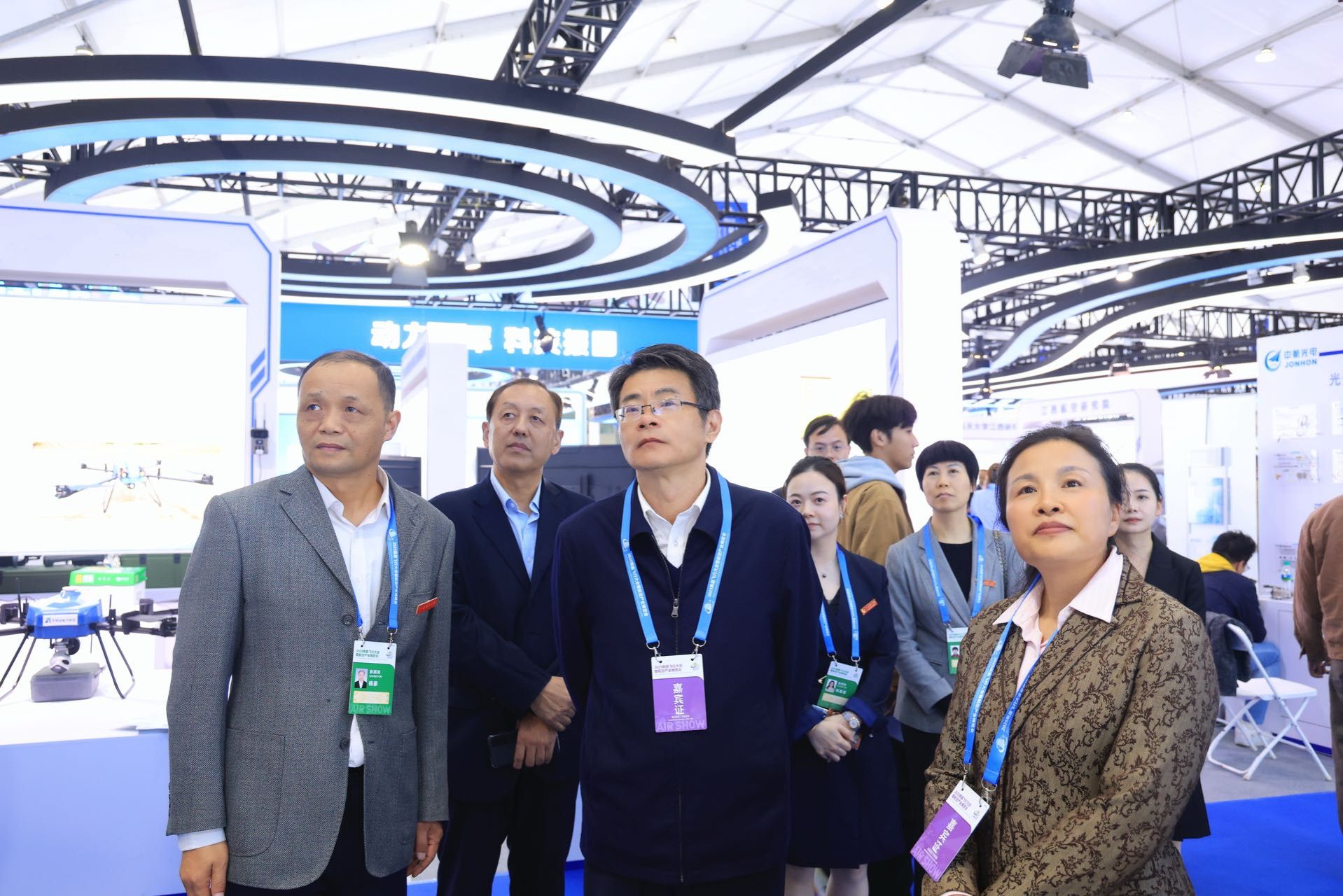 开幕式后陈震、龙国英来到学校设置在本次大会航空企业展区的学校特装展位,察看布展情况,亲切看望参与参展工作的师生员工,勉励大家要继续发扬团结奋战的精神,以专业细致的讲解和热情周到的服务,向广大市民充分展示办学特色与精神风貌。