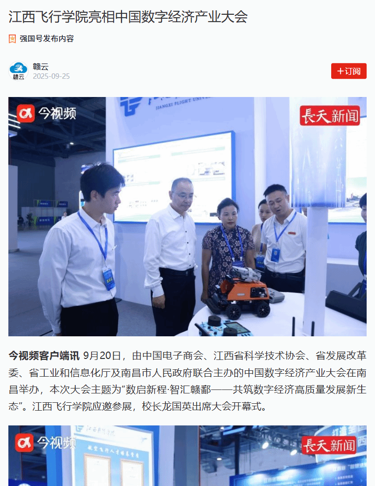 学习强国:江西飞行学院亮相中国数字经济产业大会