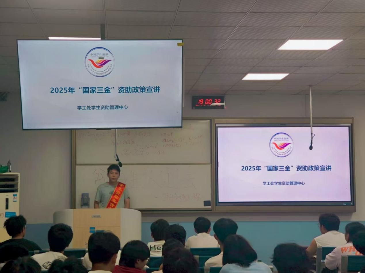 为进一步贯彻落实国家资助政策,强化学生的诚信感恩意识,学工处组织学生资助宣传大使深入全校2025级新生班级开展国家奖学金、国家励志奖学金、国家助学金资助政策宣讲,覆盖2025级58个新生班级。