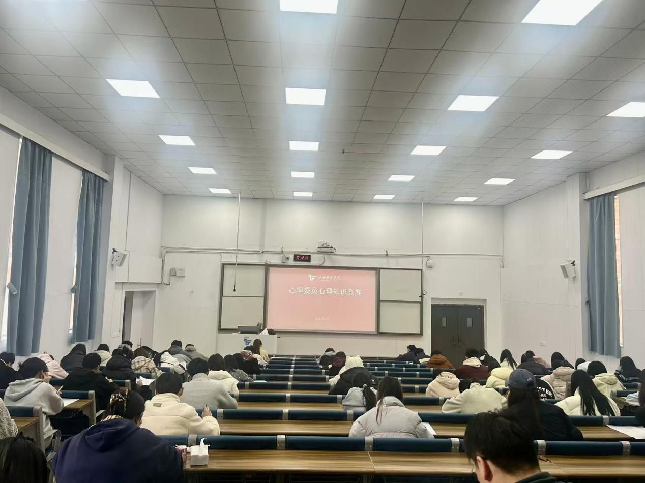 为进一步夯实我校心理健康教育工作的基层力量,全面检验心理委员队伍的专业理论素养,3月21日,由学工处心理咨询中心组织举办的心理委员心理知识竞赛在一教学楼阶梯教室顺利举行。来自各二级学院的100余名心理委员参加了本次竞赛。
