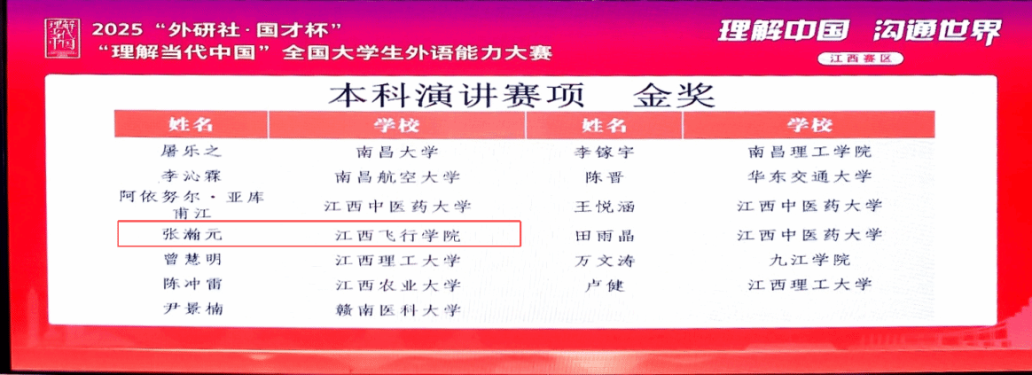 [喜报] 我校学子在2025年“外研社·国才杯” “理解当代中国”全国大学生外语能力大赛英语演讲赛项 江西赛区决赛中喜获佳绩